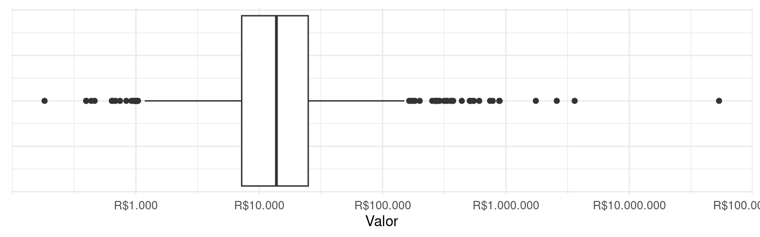 | quartil inferior - 3/2 IQR | bigodes | R$ -8.546,94 |